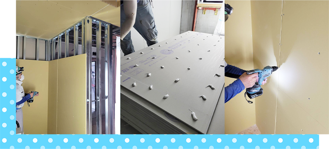 また石膏ボードには複数種類があり、それぞれ異なる性能を持ちます。お部屋の用途によって使い分け。お客様にご満足いただける施工をお届けいたします。